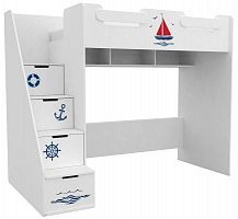 На борта двухъярусной кровати нанесено оригинальное изображение серии «KIDS», которое понравится детям. Под спальным местом имеются небольшие полочки для хранения, к примеру, постельного белья и канцелярских принадлежностей.