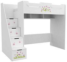 На борта двухъярусной кровати нанесено оригинальное изображение серии «KIDS», которое понравится детям. Под спальным местом имеются небольшие полочки для хранения, к примеру, постельного белья и канцелярских принадлежностей.