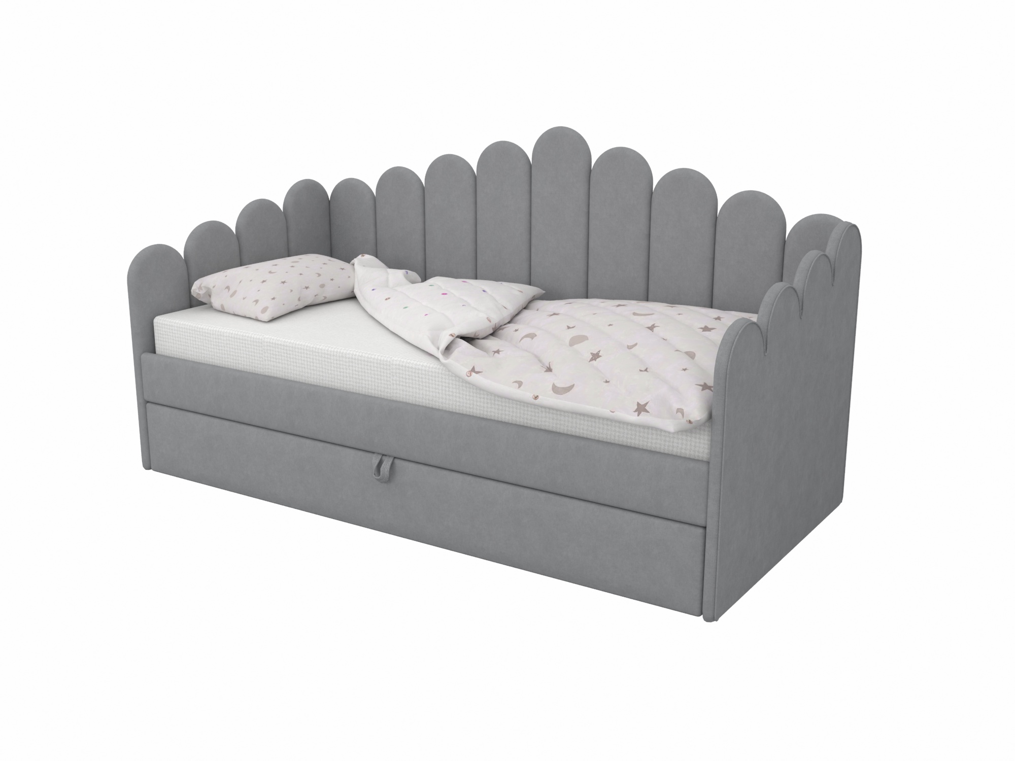 Для дополнительного хранения игрушек или постельных принадлежностей рекомендуем мягкую кровать с выкатным ящиком. Это практичное решение для детских комнат с ограниченным пространством. Также это отличный выбор для родителей, стремящихся поддерживать порядок в детской.